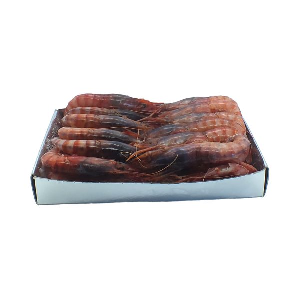 (Pleoticus Muelleri) El langostino argentino es una especie de aguas templado-frías y es un crustáceo decápodo nadador del género Pleoticus. Sin cabeza. Este producto se vende en cajas de 2 kg (precio/caja), Talla Gambón 1