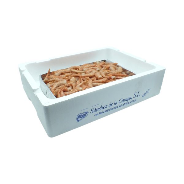 (Pleoticus Muelleri) El langostino argentino es una especie de aguas templado-frías y es un crustáceo decápodo nadador del género Pleoticus. Sin cabeza. Este producto se vende en cajas de 2 kg (precio/caja), Talla Gambón 1
